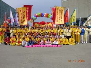 【明慧網2005年1月2日】悠揚的音樂聲中,法輪功學員專注的煉功,三、五人的晨煉或是數千人的洪法,都同樣的舒緩祥和,這樣的場面對人們來說已不陌生。從毗鄰北極的俄羅斯到接近南極的新西蘭南島,從氣候寒冷的北歐到赤日炎炎的南亞,還有北美、南美、澳洲、非洲,無論甚麼樣的語言和種族你都可以找到法輪功……
