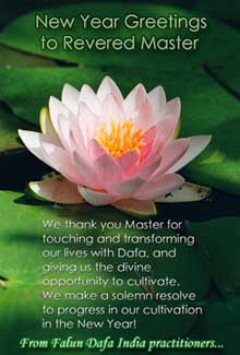 在新的一年裏,我們將努力做好正法弟子應做的三件事,在救度眾生的同時修好自己,走正大法弟子的路。我們將理智,清醒的走向成熟,實現我們的史前大願,不辜負師父的慈悲苦度,不辜負宇宙眾生的期望。
