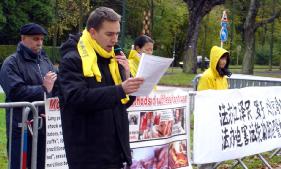 法輪功學員們要向中使館並通過他們向中國境內的中共參與迫害法輪功的各級官員們傳遞一個重要信息:「天滅中共是歷史的必然,神必將清算對大法行惡者。」「然而,大法的傳出就是為了救度世人,包括社會各階層的人士。即使曾經做過錯事的人,也還有機會棄惡從善。」