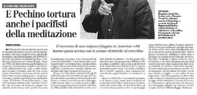 在監獄醫院裏很苦,還有一種精神上的折磨,每天早晨聽到那鐵鏈「嘩嘩」作響,門一道道被打開,接著「六一零」、安全局的惡人輪番進來兇神惡煞般的恐嚇、威逼、非法審問。一連十天左右,直到我將他們的筆錄本撕掉為止。他們再不來了。看著他們的行為,只覺得可悲、可憐又可笑。我甚麼也不怕,在黑暗的監獄裏,我看見房屋上空護法神都在那坐著呢。