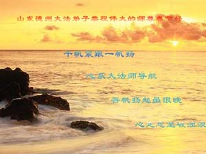 從開始發正念時,我從法中悟到發正念的重要性。我每天堅持全球發正念,儘量做到整點發正念。邪惡干擾腳痛仍堅持時間發完。坐車我對司機、乘客發正念,對親戚朋友發正念,對老伴兒女發正念,對社區派出所、街坊鄰居發正念,對所有迫害法輪功的單位發正念,清除這些人空間場的一切邪惡及頭腦中被邪惡的造謠謊言所灌輸的毒害,有一個美好的未來。