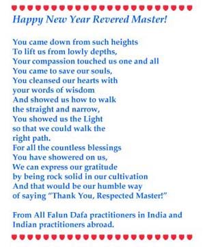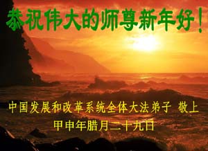 中國大陸的大法弟子,全世界大法弟子,新年好!乙酉年開始了,在這一年中,正法洪勢會給人類帶來變化。為此,大家要更加做好大法弟子要做的三件事,放下執著,不要用人心看待大法弟子必須認清的迫害與迫害我們的邪黨的真面目。