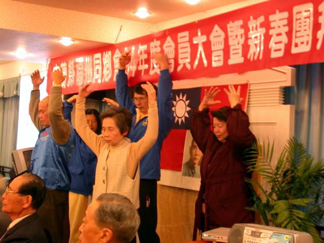 同鄉會會員報到時,現場播放新唐人電視台2005年全球華人新年晚會台北場次的集錦30分鐘。因受場地限制,約有二十位宜蘭縣學員參與演示五套功法,動作整齊優美、音樂悠揚柔和,博得來賓一致好評。功法表演前由學煉多年的慧燈中學洪校長簡單介紹法輪功,包括:注重心性修煉的功法特點,已洪傳六十多國、使全球一億多人身心受益,遭中共江氏集團迫害及近年海外多國訴江的概況。洪校長特別推崇法輪功以「真、善、忍」為本,提升道德,強身健體,其淨化人心、福國利民之卓著功效已獲世界各國一千三百多項褒獎。