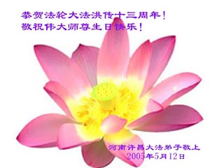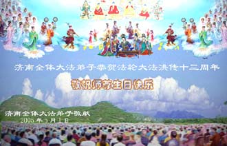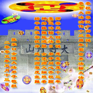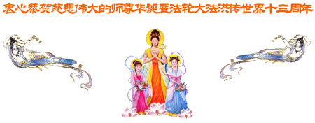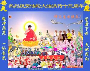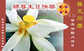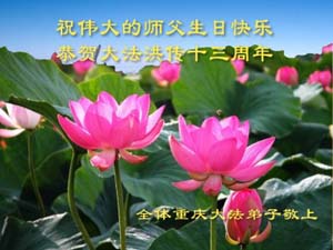 衷心恭賀慈悲偉大的師尊華誕暨法輪大法洪傳世界十三週年我們一定做好三件事,堂堂正正走好最後的路,請師尊放心!