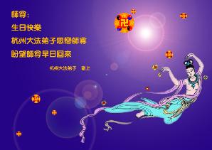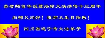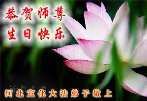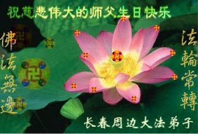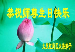 我代表黑龍江省肇東市大法弟子祝師父生日快樂、萬事如意。我們一定做好正法的三件事,不辜負師父的苦心救度,不愧對「正法時期大法弟子」的稱號。