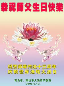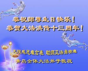 青島市全體大法弟子共慶世界法輪大法日!並祝全世界法輪大法弟子節日快樂!