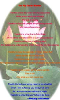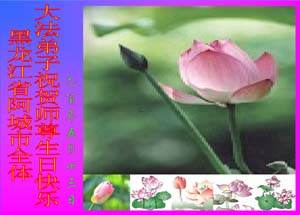 在偉大的師尊五十四歲華誕來臨之際,在法輪大法洪傳十三週年之際,和世界法輪大法日到來之際,甘肅省和四川省全體大法弟子向慈悲偉大的師尊致以最崇高的敬意:
