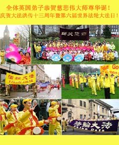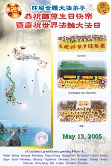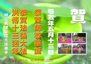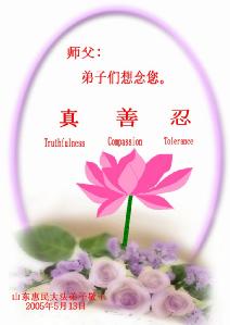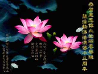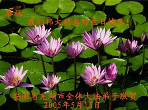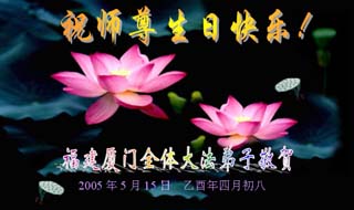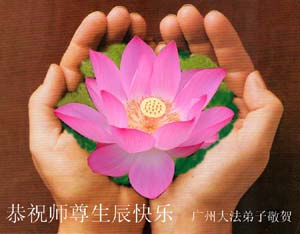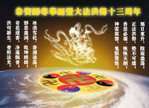 在喜慶2005年5月13日世界法輪大法日到來之際,廣州深圳全體大法弟子恭賀慈悲偉大的師尊傳法十三週年!向師尊致以最崇高的敬意,感謝師尊的慈悲苦度!