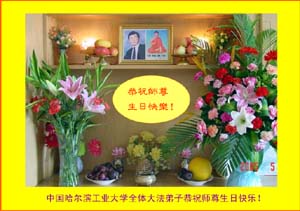 值師尊誕辰之際,恭請師尊放心:歷經五年多證實大法的艱苦歷程,我們從教訓和成功中一步步走到今天,越來越理智,越來越成熟;今天,我們已經形成了一個強大的整體正念之場,採取一切可用方式,救度眾生,修好自己,走正走好最後一段路,實現我們史前的誓約,履行歷史賦予我們的偉大而光榮的責任。