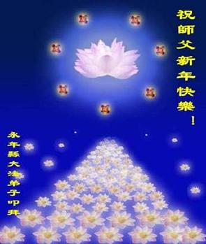 弟子們想念您:在元旦佳節來臨之際,我們湖田地區全體大法弟子(小弟子)祝慈悲偉大的師尊新年快樂!