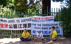 、煉功、發正念,抗議中共迫害法輪功,並向人們講述法輪功學員在中國遭受迫害的真相。