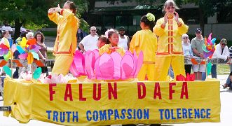 今年的大遊行由一百三十個隊伍組成。除了傳統的馬隊、樂隊、俱樂部以及當地各種商家以外,法輪功學員帶來的功法演示和中國傳統文化使觀眾們耳目一新,觀眾們回報以熱烈的掌聲和稱讚聲。