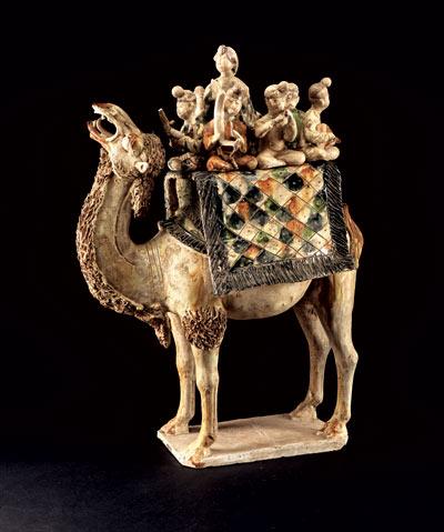 ![]() 古代的歌舞藝術表演者形像。圖為唐三彩駱駝載樂俑 |