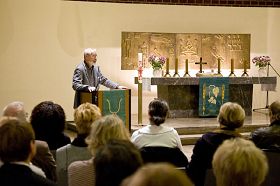 ![]() ![]() 海蘭德教堂的拉能博格神父為畫展致辭 |