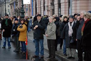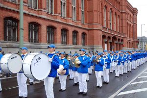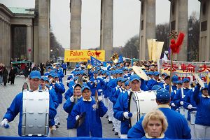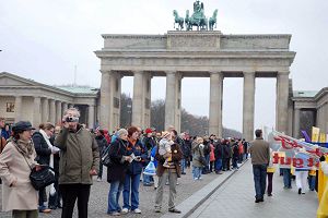 來自丹麥的漢斯Hans在退休前是位部級官員。他在丹麥時就了解到中共對法輪功的迫害。在布蘭登堡前,老人對記者說:「他們剛才演奏的曲子我不熟悉,好像沒聽到過。但是那首貝多芬的歡樂頌,我是知道的。我覺的他們(法輪功學員)在象徵柏林牆倒塌的布蘭登堡前演奏極具意義。」