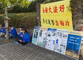 當天是週五,當地學員如往常一樣,一大早來到中領館前,打出「法輪大法好」、「停止迫害法輪功」的橫幅和揭示法輪功學員在中國大陸無辜受到殘酷迫害的真相展板,每半小時一次發正念,和平抗議中共對法輪功瘋狂鎮壓的惡行。