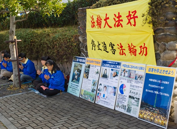 此次活動獲得日本警方的許可。很多警察來觀看展板,也有警察說:「法輪功是最和平的團體,你們(大法弟子)都很優秀。」
