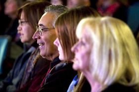 ![]() 丹尼斯•阿沃德(Dennis J Awad)(左二)與朋友Angela Rohan女士(左一)一同前來觀賞神韻在洛杉磯的首場演出。 |