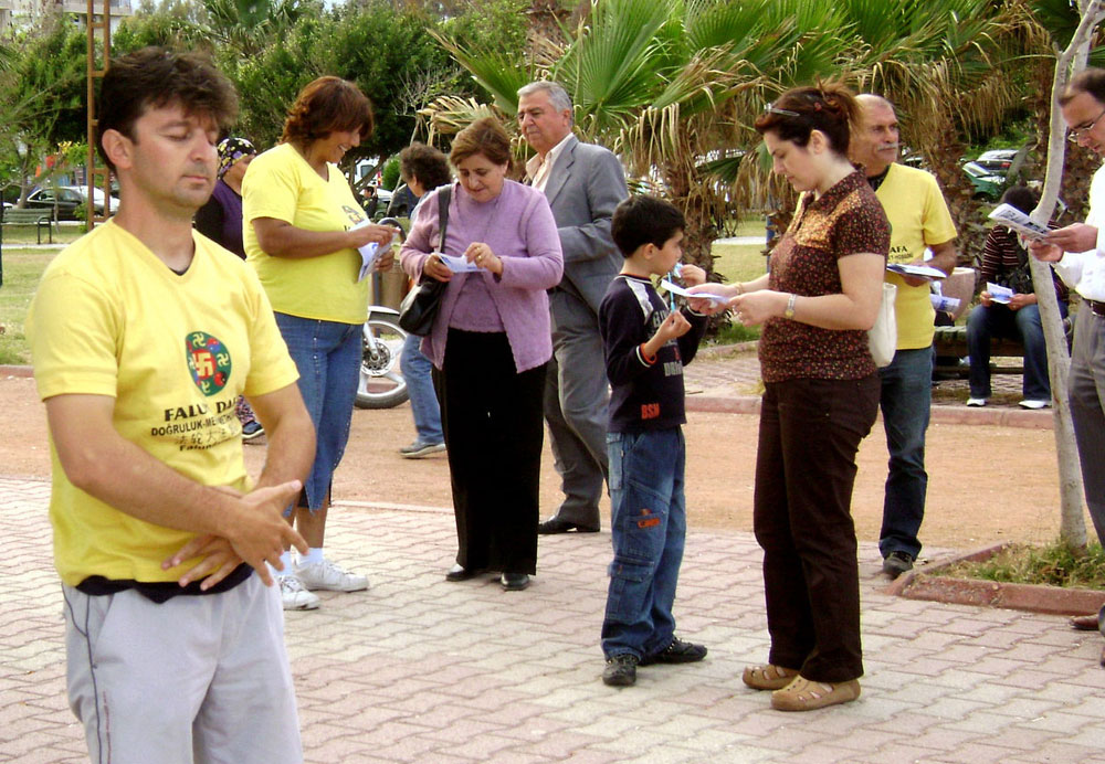 【明慧網二零零八年五月十三日】在第九屆「世界法輪大法日」來臨之際,土耳其不同城市的法輪功學員紛紛舉行活動,慶祝為紀念法輪大法洪傳於世而設立的這一偉大節日,並恭賀慈悲偉大的師尊壽誕。