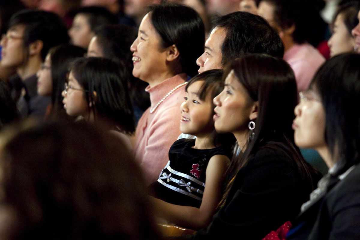 二零零九年一月一日晚八點,神韻國際藝術團在洛杉磯的第三場演出。從中國大陸來美定居的李先生夫婦和劉先生夫婦,都不約而同的特意帶著他們的孩子來觀看神韻演出。