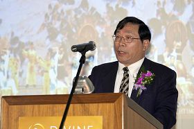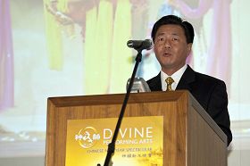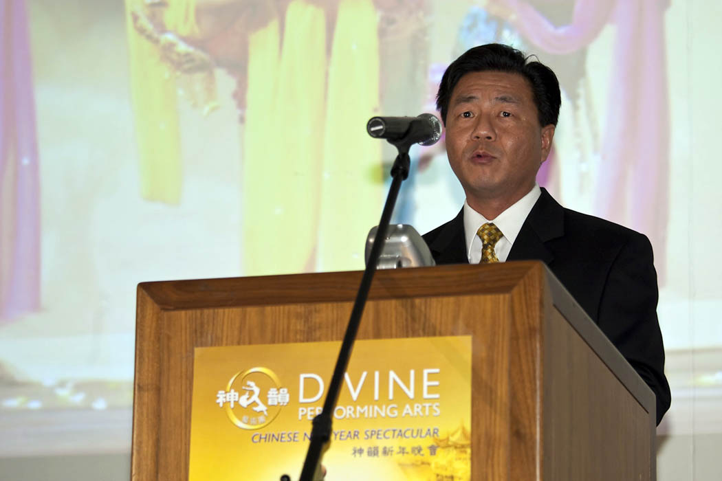 ![]() 神韻晚會協辦單位新唐人電視台洛杉磯分台台長Frank Tsai在貴賓會上發言 |