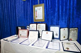 ![]() 洛杉磯神韻晚會開演前,晚會主辦單位收到來自國會議員、州議長、州議員、市長和市議會的近二十份褒獎和賀狀。 |