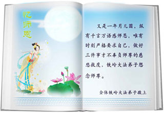 在宇宙正法的日日夜夜裏,您為了眾生操盡了心思,付出了一切。尤其由於部份像自己一樣的弟子的不爭氣,給您正法製造了額外的麻煩和難度,但是這些您都默默的為我們承擔。這浩蕩的佛恩,亙古未有的洪大佛恩,是弟子生生世世永遠都無法回報的,也是無法用人世間任何感激與讚美的語句所能表達的。弟子只能在即將到來的中秋佳節,送上一句微不足道的祝福:師尊祝您中秋快樂!弟子以後一定做好三件事情,讓您少操心。
