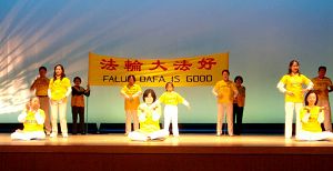 ![]() 法輪功學員在文化節的舞台上演示功法 |