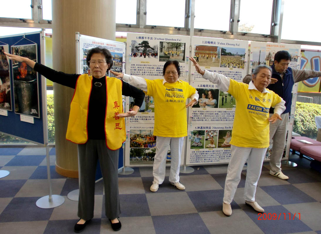 在文化節的第二天,學員們在舞台上演示法輪功的功法之後,馬上就有一位個子不高、看起來很精神的老先生到展位上了解法輪功。他看了教功錄像後,馬上就買了一本日語的《法輪功》,說想學功。在和他的談話中,學員們得知他今年已經九十二歲了,問他有甚麼保養的秘訣。他卻笑著說:「我想,如果我煉了這個法輪功,就會更年輕了。」