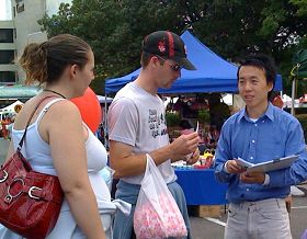 ![]() 法輪功學員在漁人節活動上傳播真相 |