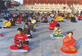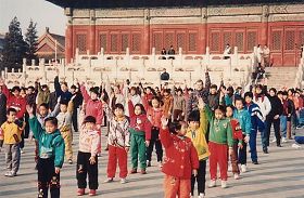 下面是一九九九年中共鎮壓法輪功前,北京大法小弟子集體煉功的祥和、美好場面。願不久的將來中國大陸的人們能自由享有他們的信仰──讓法輪大法的洪大法光照徹中土大地!