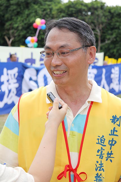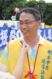 住在集會地點不遠處的吳先生,在得知這個聲援大會的消息後,早趕到會場,他說,兩年多前聲援二千萬退黨遊行在新竹舉行時,那是他第一次知道大批的中國民眾以這樣和平理性的方式與共產邪黨決裂。從那時起,他開始上網關注中國民眾三退及法輪功被迫害等相關議題。