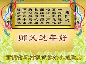 並代表被非法關押在公主嶺監獄的外甥、黑嘴子勞教所的姐姐恭祝師尊新年好!