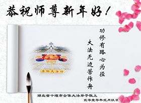 尊敬的師尊,您好!首先敬祝師尊新年快樂!弟子雖然學法多年,但沒有真正學會向內找,沒有做到真正實修,所以對法理解很淺薄。在新的一年裏,要聽師尊的話,「學好法、多學法、經常學法,成為真正的大法修煉人,負擔起洪揚大法與救度眾生的責任」(《致印度首屆法會》)。