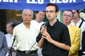 ![]() 二零零八年八月六日,記者無疆界亞洲部負責人萬桑‧布魯塞樂(Vincent Brossel)在新聞發布會上發言 |