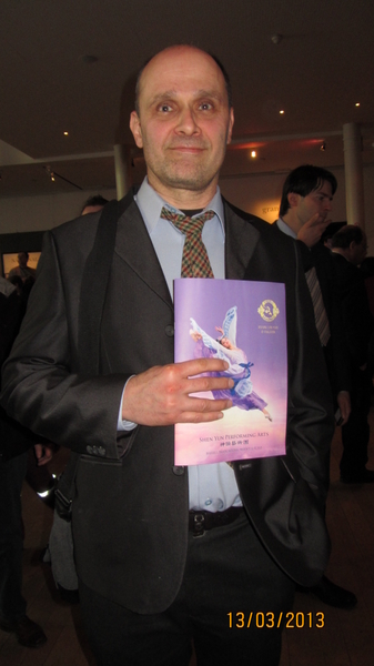 沃爾克海依地(Volker Heydt)先生是資深政治家,也是歐盟稅務專家和資深律師。他擔任過三年歐盟委員會海關與稅務同盟總司的司長,退休後專門選擇從事法律和稅務諮詢業務。當Volker Heydt先生夫婦和他們的朋友一行四人觀看了三月十三日的演出後,海依地先生對演出讚不絕口他說:「演出太美了,太棒了!所有演員的形像和布景畫面都十分完美。我從前沒看過這樣的演出。尤其是當舞台上的演員和背景屏幕上的情景結合起來,彼此互動的時候,真是太奇妙了。」