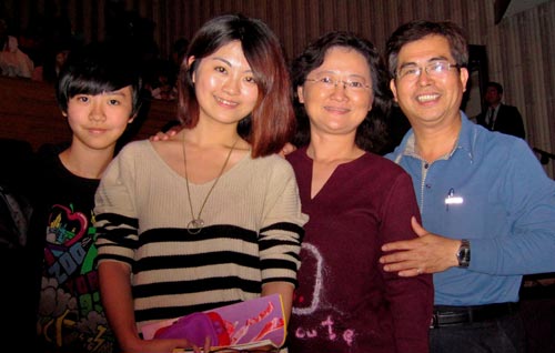 ![]() 老斑馬樂團團長、漢民國小校長顏永進偕家人觀賞神韻演出。 |