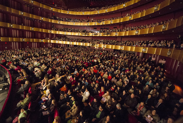 ![]() 二零一三年四月二十、二十一日在紐約林肯中心大衛寇克劇院的四場演出幾乎場場爆滿。圖為二十一日下午場演出的盛況。 |
