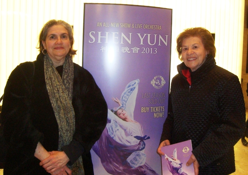 ![]() 特里斯•莫納涵(Therese Monaghan)教授(左)與朋友觀看了四月二十日下午場的神韻後,激動不已,喜極落淚。她說,演出全方位觸及她的靈魂。 |