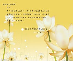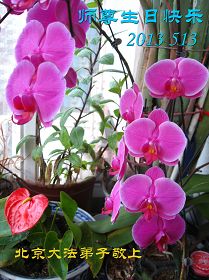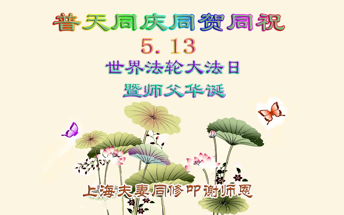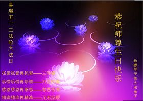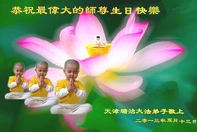 這是眾生得救的大喜日子,也是弟子和師父團圓的日子,我們都希望師父能早日回到家鄉來,弟子們都想念您呀,我們用精進迎接師父!和世界大法弟子圓容師父所要的。在師父的加持下做好三件事,跟師父回家。