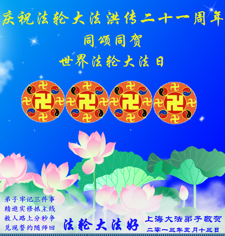 祝(法輪大法洪傳)二十一週年快樂!