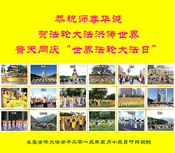 長春一新學員在二零一三年四月十八日寫下詩一首,敬獻法輪大法洪傳世界二十一週年暨二零一三年「世界法輪大法日」。