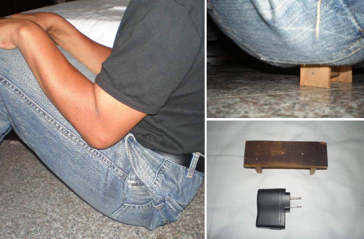 天津市西青區梨園頭第一監獄曾經迫害法輪功學員。法輪功學員被集中在監獄的教育科管理,大約2002年以後科裏邪惡警察聽信刑事犯的壞主意,針對法輪功學員製作了一些小板凳,最小的寬3釐米,長5、6釐米,稍大一點的也有,總之都不大,主要是強迫轉化後又不轉化的法輪功學員罰坐在板凳上。這種刑罰是很殘酷的,板凳很小,除了吃飯、睡覺都得坐著,時間一長就磨破了,劉振剛的屁股爛個洞,洞的大小可以放個暖壺塞,可想而知這個刑罰的厲害和警察犯人的邪惡,我們很多人都坐過這種板凳,現揭露邪惡的伎倆,曝光邪惡,如圖所示。