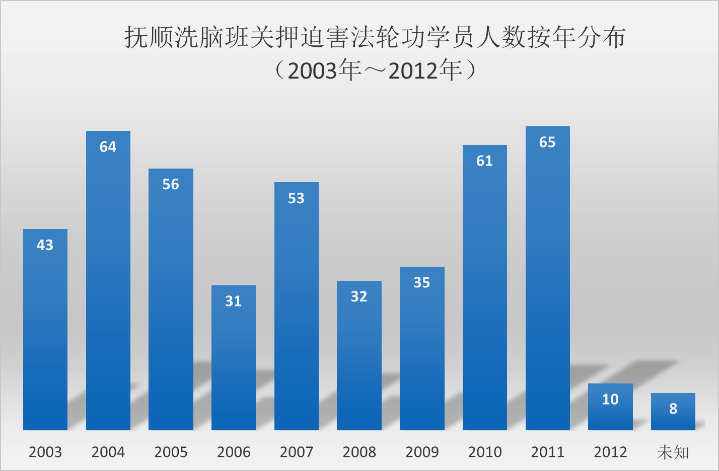 撫順市羅台山莊洗腦班由於對法輪功學員偽善至極,因而臭名昭著。十年來,至少有幾千名法輪功學員遭受此洗腦班的迫害,由於更多的被迫害人員名單沒有在網上曝光,這裏只是把法輪功學員上傳明慧網的迫害案例做個粗略的統計,2003至2012年至少有458名法輪功學員被關押在此遭受洗腦迫害,被直接迫害致死的至少有3人,更確切的數據資料還有待於查證。