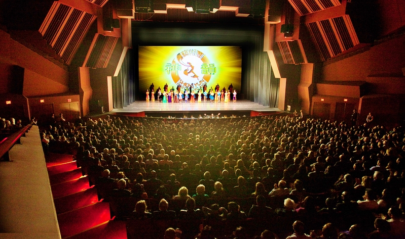 ![]() 圖1:二零一四年三月十一日,神韻紐約藝術團在橙縣演藝中心的首場演出全場爆滿。 |
