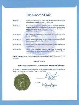 鑑於,傑斐遜城和法輪大法修煉者於二零一四年五月十三日共同慶祝世界法輪大法日;並且