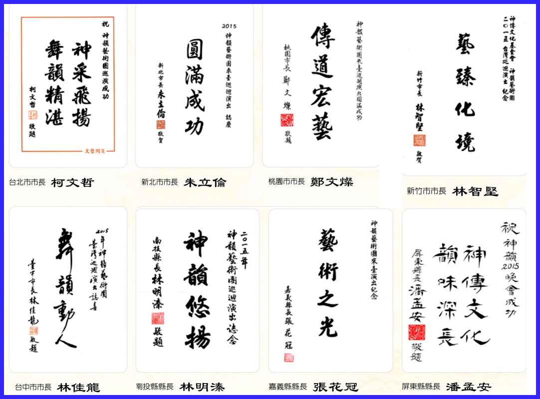 ![]() 圖4:台灣六大直轄市市長,及各級地方首長都發文齊賀,歡迎神韻再次訪台。 |