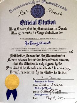 【明慧網二零一五年五月十日】在即將到來的五月十三日世界法輪大法日之際,美國麻薩諸塞州參議員湯瑪斯-麥克吉(Thomas McGee)代表參議院全體議員發表聲明書,恭賀第十六屆世界法輪大法日。