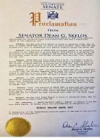 紐約州第一選區參議員Kenneth P. LaValle及其頒發的褒獎紐約州第三選區參議員Thomas D. Croci及其頒發的褒獎紐約州第四選區參議員Philip M.Boyle及其頒發的褒獎紐約州第九選區參議員Dean G. Skelos及其頒發的褒獎紐約州第十九選區參議員John L. Sampson及其頒發的褒獎紐約州第三十選區參議員Bill Perkins及其頒發的褒獎