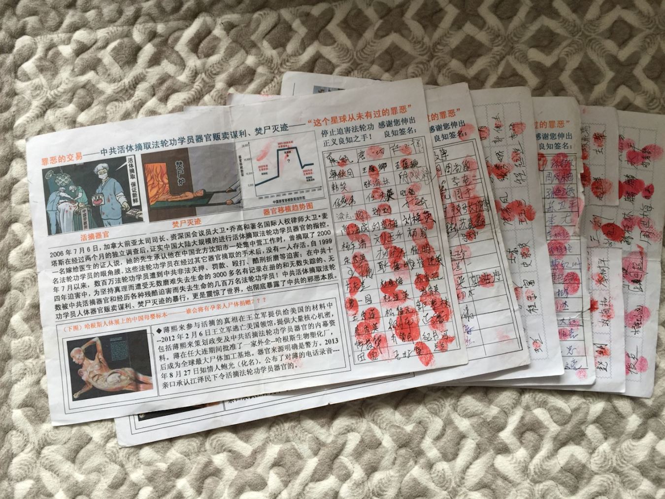 自2016年8月份以來,河北省張家口市周邊縣廣大民眾,通過法輪功學員不斷的講真相,知道了江澤民與共產黨的邪惡,迫害法輪功學員活摘器官的手段殘忍,在舉報江澤民和制止活摘器官的徵簽中,積極參加與支持,8─12月舉報江澤民徵簽人數為2182人,抗議江氏集團活摘器官徵簽人數為262人,以下附有徵簽名單照片。